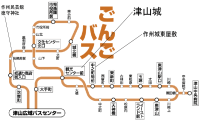 ・JR津山駅→市内循環ごんごバス西回りで4分、