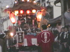 山車を持つ町内会では、上之町七丁目の「七福子」などがあり、多くの町内がだんじりの長提灯、法被、太鼓に名前を入れている。写真は安岡町・鳳龍臺の安若連が記された太鼓収納箱。