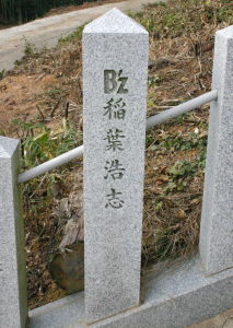 写真左=川崎八幡神社にある稲葉浩志さんの名前が刻まれた石柱