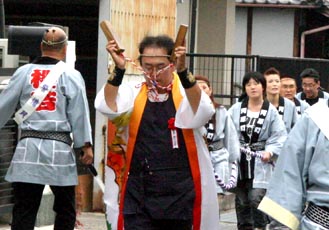 津山松平家の大名行列が起源の「田町奴行列」も拍子木が重要な鳴り物のひとつです。笛(ホイッスル)や小ぶりの拍子木も気軽でよいのでしょうが、その分だけ祭りから何かがなくなってしまう気がしてなりません。