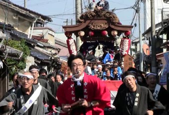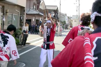 だんじりも大神輿を真似て担ぎ手の拍子をとるために拍子木を使うのは当然の成り行きで、台車に乗った現在では、だんじりを指揮する先導役などが拍子木で合図をおくるという形になりました。だんじりが担がれていた時は、先導役はだんじりのすぐ近くで指揮を執っていましたが、台車に乗ってからは曳き綱の長さ分だけ、だんじりから離れた為、より拍子木の打ち方が重要になりました。