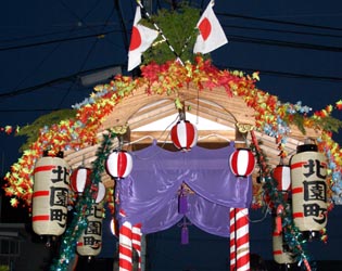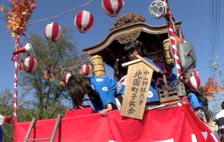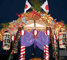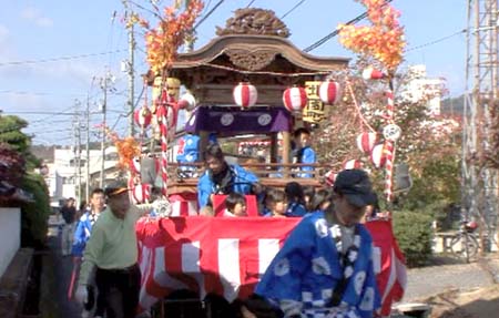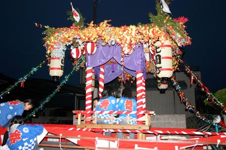 上の写真は2008年まで出動していた飾り山車。老朽化に伴ない処分された。
