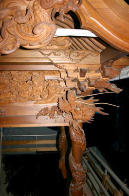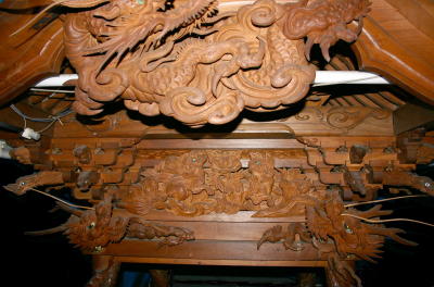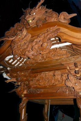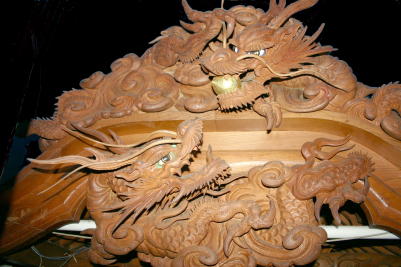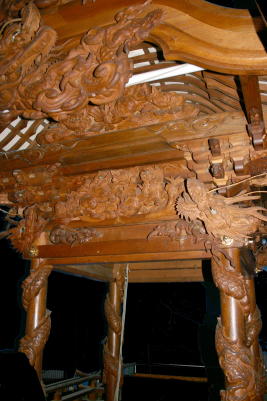 見事な錨龍臺の彫り物。安岡町の鳳龍臺などと同じく柱巻龍が特徴。