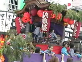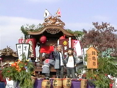 左の写真は、台車を新調した平成20年(2008)の宵祭り出動時の錦亀臺