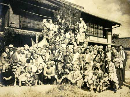 写真のご提供ありがとうございました。当時の祭りは長襦袢で参加していたことが良く分かる写真です。戦前から飾り山車が出動していたことを伝えるとともに、現在の飾り山車の元祖ともいえる70年以上も前の貴重な写真です。